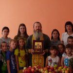 Отец Сергий рассказал ребятам о празднике урожая, во время которого верующие приносят в церковь освятить яблоки, груши, сливы, виноград. Это один из двенадцати крупнейших церковных праздников — день Преображения Господня.