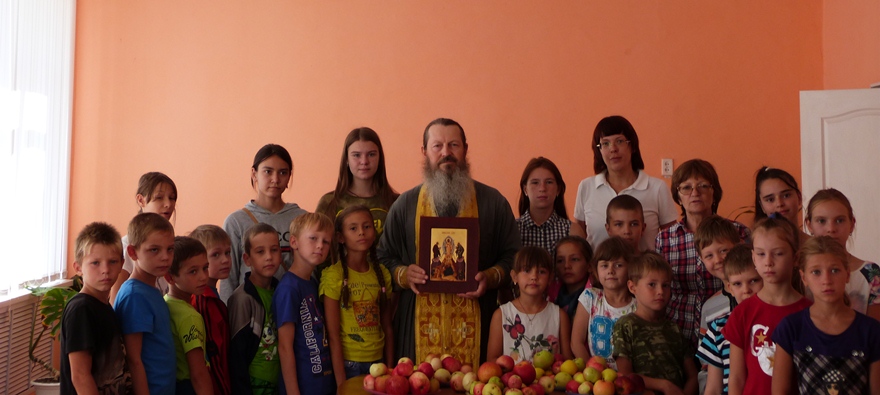 Поскольку по старинному обычаю в этот праздник принято кушать яблоки, такой возможностью воспользовались и в детском лагере. Дети с удовольствием приняли  подаренные гостями освященные плоды урожая этого года.