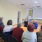 Библиотекарь Ткачева Олеся рассказала пенсионерам о тяжёлых испытаниях, выпавших на долю жителей осаждённого города Ленинграда: о голоде и холоде, о детях и женщинах, работавших наравне с мужчинами на заводах, о защите и обороне Ленинграда советскими солдатами.
