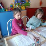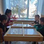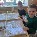 В ходе занятия использовались световые песочные столы, которые создали атмосферу творчества и расслабления. Ребята с удовольствием выполняли игровые упражнения, которые способствовали снижению мышечного напряжения и развитию мелкой моторики.